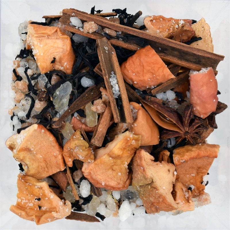 черный чай, яблоко сушеное, корица, гвоздика, бадьян, медовые гранулы, сахар кристаллический.